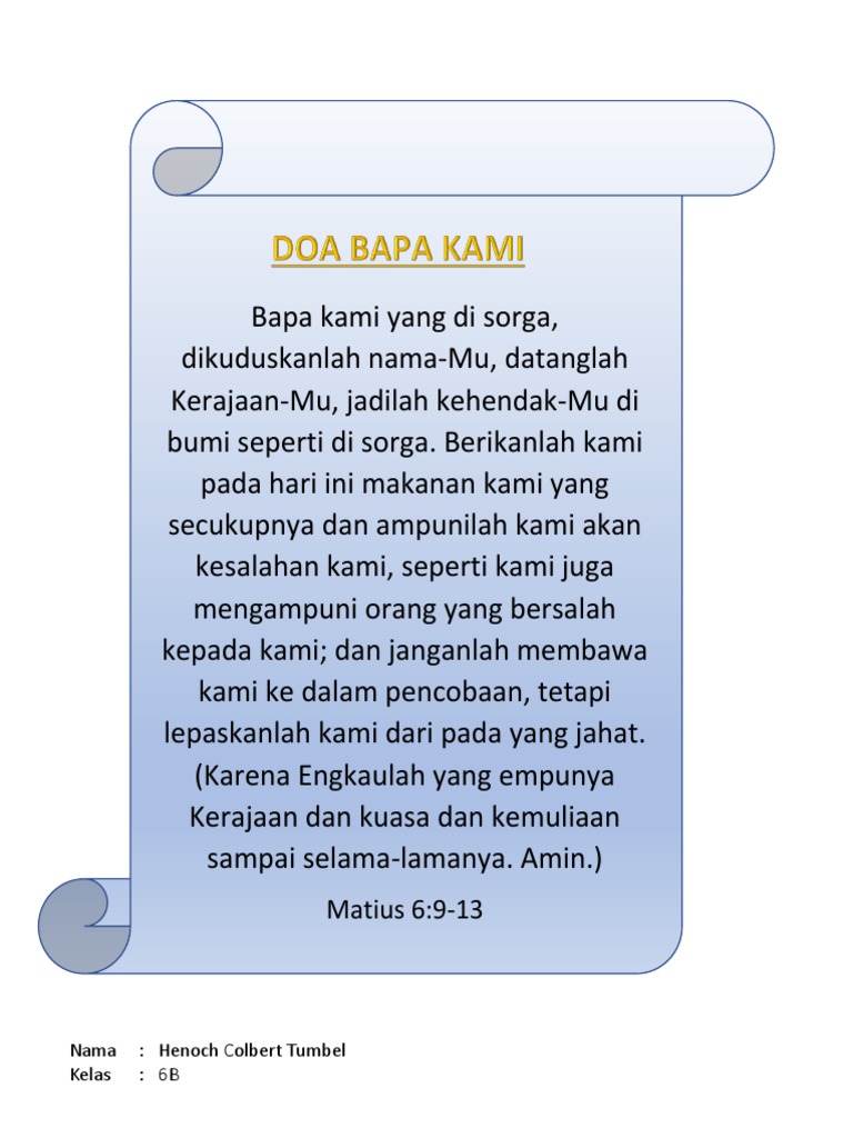 Membuat pola tangan dengan 10 jari, ditulisi kalimat doa bapa. Dalam komposisi doa, penulis menggunakan beberapa teknik. Berkatilah kami semua yang di kelas ini. Doa bapa kami adalah doa yang paling terkenal dalam agama kristen. Maybe you would like to learn more about one of these?